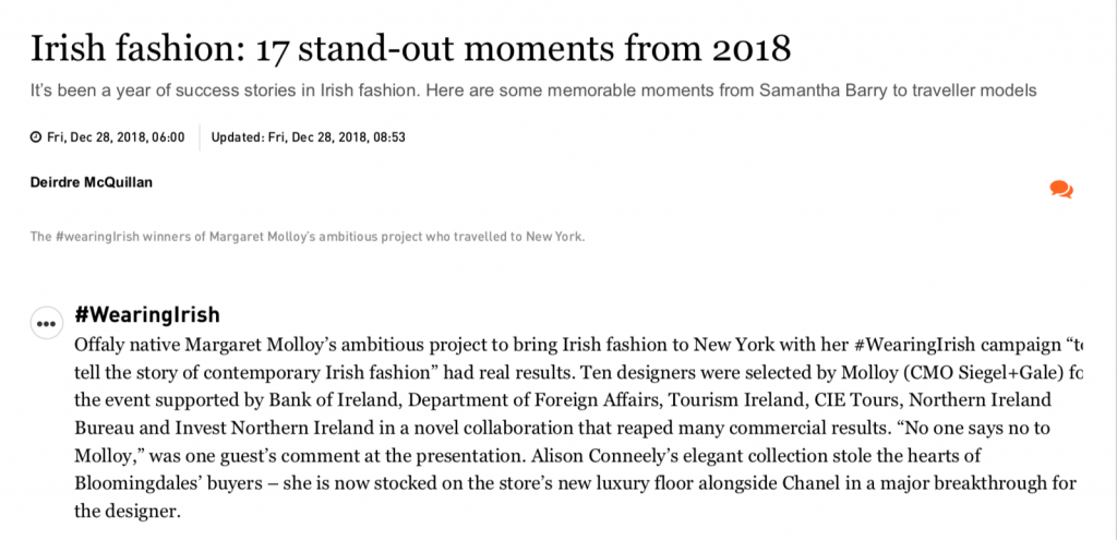 Are you a reporter or blogger interested in writing a WearingIrish story? Contact WearingIrish, Creator, Margaret Molloy at mmolloy@wearingirish.com.